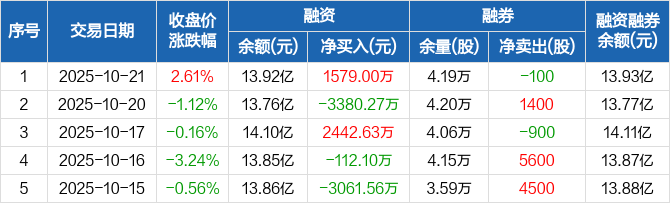 四方精创:融资净买入1579万元,融资余额13.92亿元(10-21)