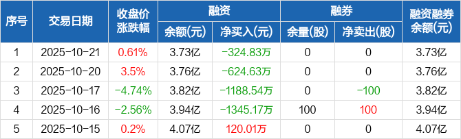 美联新材:连续4日融资净偿还累计3483.17万元(10-21)