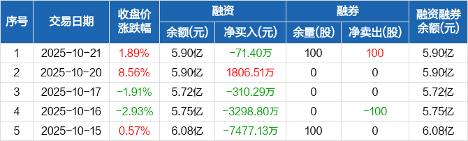 斯菱股份:融资净偿还71.4万元,融资余额5.9亿元(10-21)