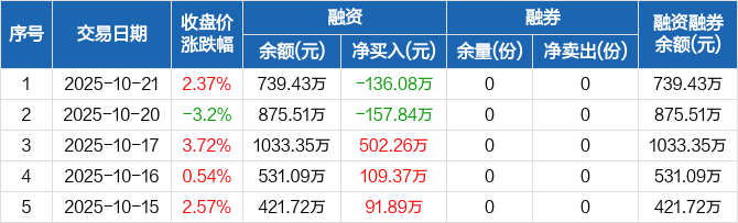 金ETF:融资净偿还136.08万元,融资余额739.43万元(10-21)