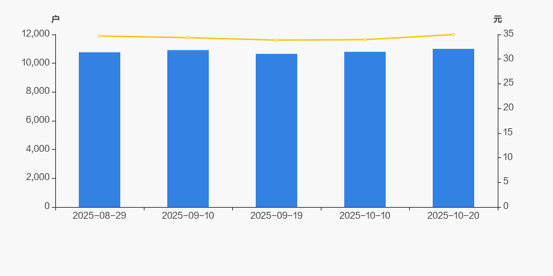 2025年8月29日至今,公司股东户数有所增长,区间涨幅为2.19%。2025年8月29日至2025年10月20日区间股价上涨0.84%。