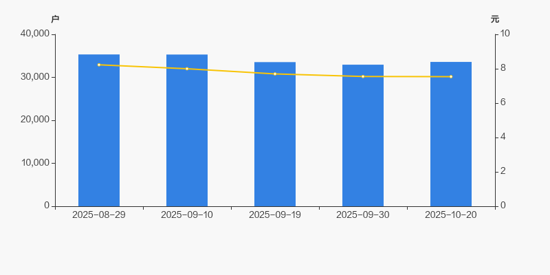 2025年8月29日至今,公司股东户数有所下降,区间跌幅为4.93%。2025年8月29日至2025年10月20日区间股价下降8.38%。