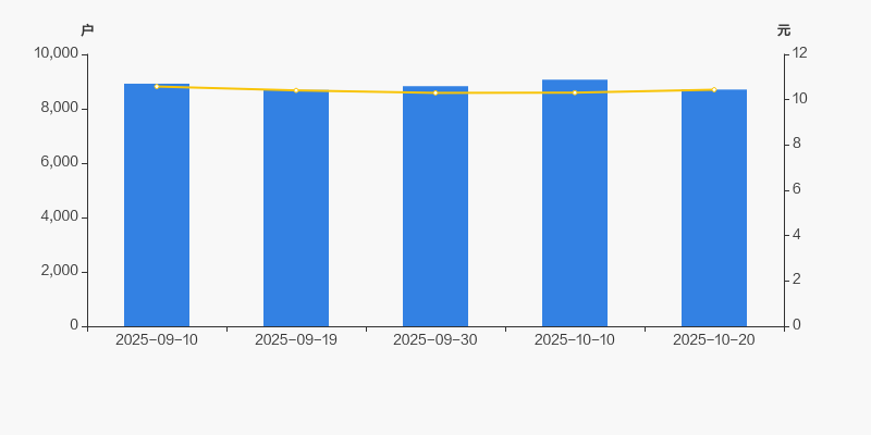2025年9月10日至今,公司股东户数有所下降,区间跌幅为2.42%。2025年9月10日至2025年10月20日区间股价下降1.32%。