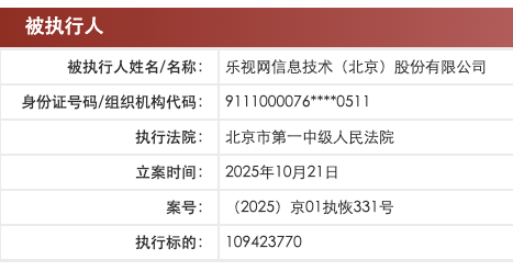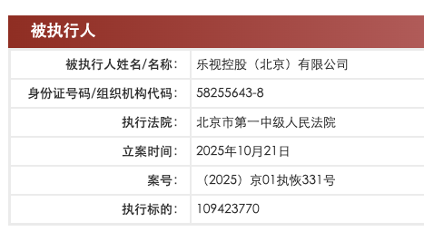 中国执行信息公开网显示,10月21日,乐视控股(北京)有限公司、乐视网信息技术(北京)股份有限公司、乐视云计算有限公司新增一则恢复执行信息,执行标的1.09亿余元,执行法院为北京市第一中级人民法院。