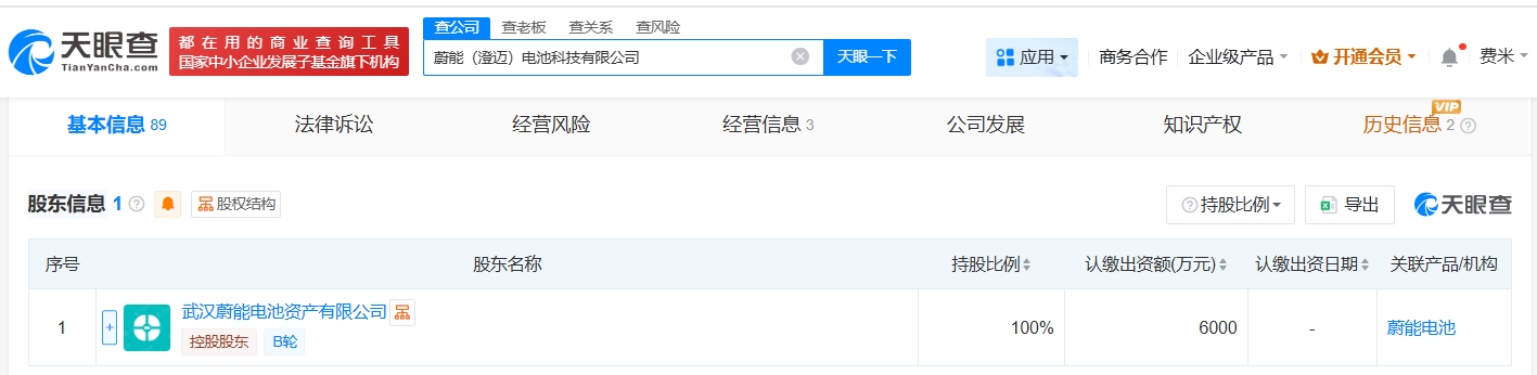 每经AI快讯,天眼查App显示,近日,蔚能(澄迈)电池科技有限公司成立,法定代表人为赖晓明,注册资本6000万元,经营范围包括电动汽车充电基础设施运营、蓄电池租赁、新能源汽车废旧动力蓄电池回收及梯次利用等。股东信息显示,该公司由武汉蔚能电池资产有限公司全资持股。
