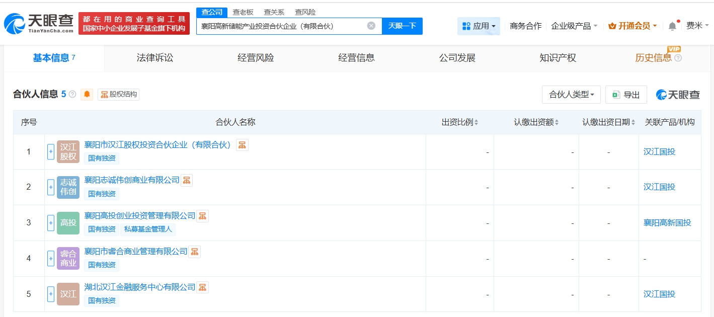 天眼查App显示,近日,襄阳高新储能产业投资合伙企业(有限合伙)成立,执行事务合伙人为襄阳高投创业投资管理有限公司,出资额50.05亿元,经营范围为以自有资金从事投资活动,由襄阳市汉江股权投资合伙企业(有限合伙)、襄阳志诚伟创商业有限公司、襄阳高投创业投资管理有限公司等共同出资。