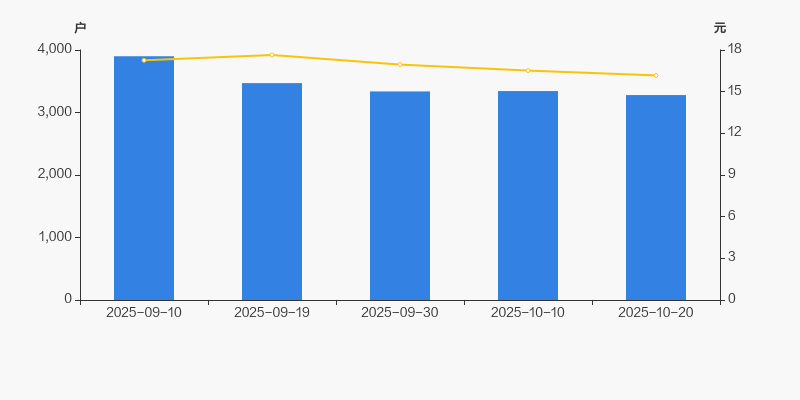 2025年9月10日至今,公司股东户数显著下降,区间跌幅为15.92%。2025年9月10日至2025年10月20日区间股价下降6.32%。