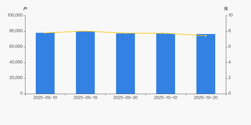 截至2025年10月20日,公司最新总股本为7.3亿股,其中流通股本为6.02亿股。户均持有流通股数量由上期的7805股上升至7878股,户均流通市值5.85万元。