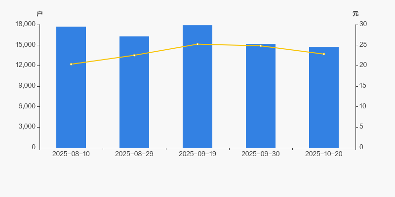 2025年8月10日至今,公司股东户数显著下降,区间跌幅为16.72%。2025年8月10日至2025年10月20日区间股价上涨12.09%。