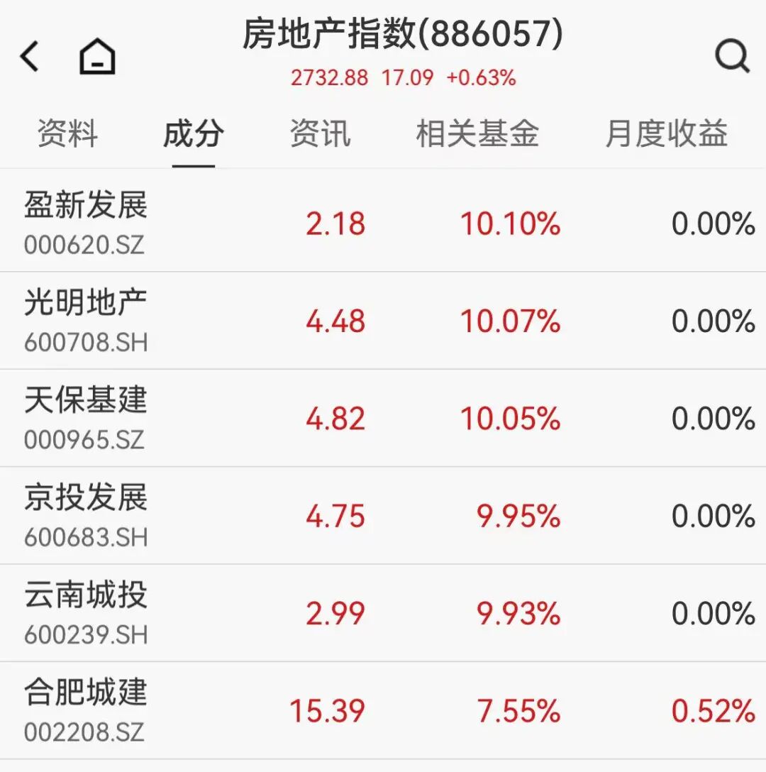 房地产板块持续拉升,盈新发展实现3连板,光明地产、上实发展、京投发展等多股涨停。