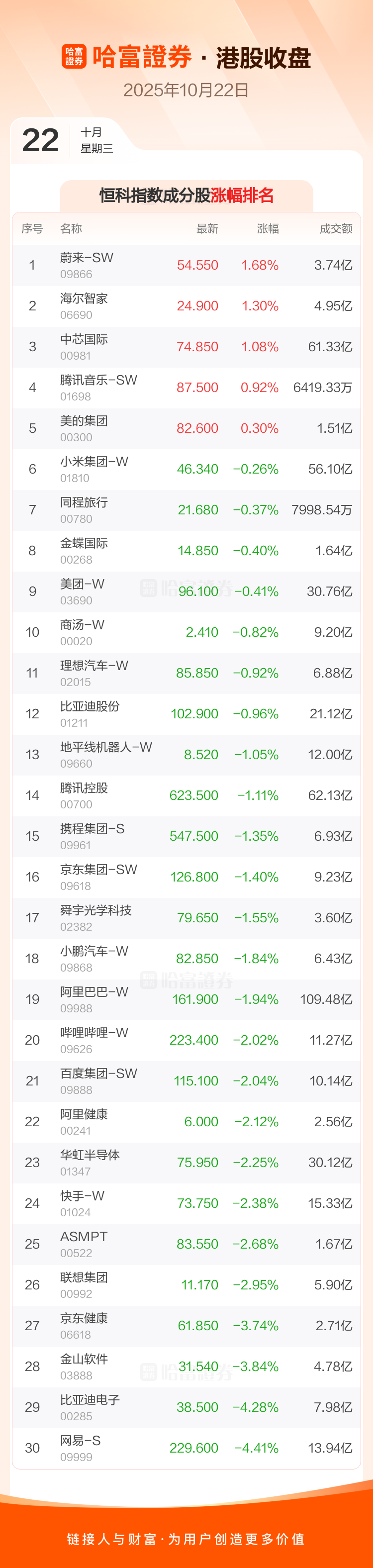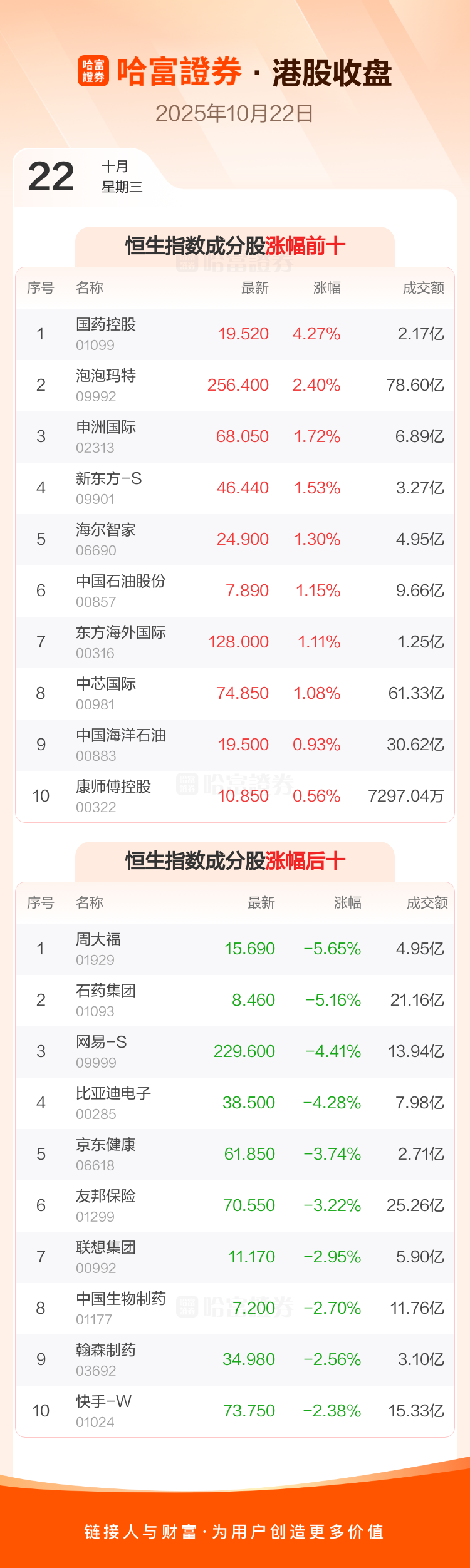 港股收盘:恒指跌0.94% 周大福领跌成分股