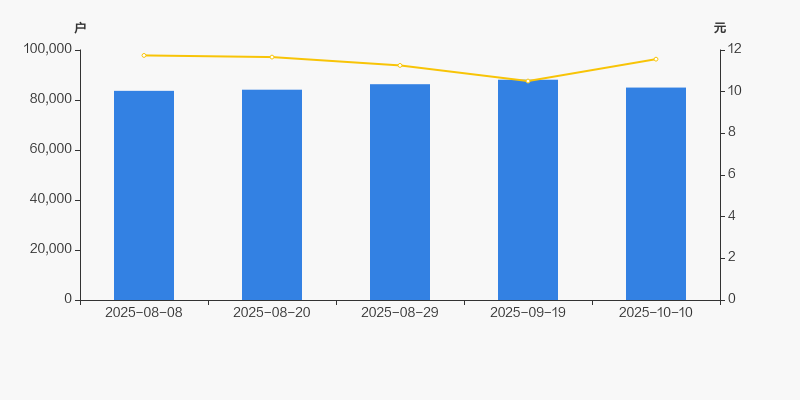 2025年8月8日至今,公司股东户数有所增长,区间涨幅为1.57%。2025年8月8日至2025年10月10日区间股价下降1.53%。