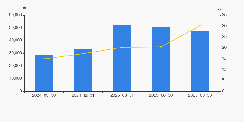 2024年9月30日至今,公司股东户数显著大幅增长,区间涨幅达64.89%。2024年9月30日至2025年9月30日区间股价上涨102.25%。