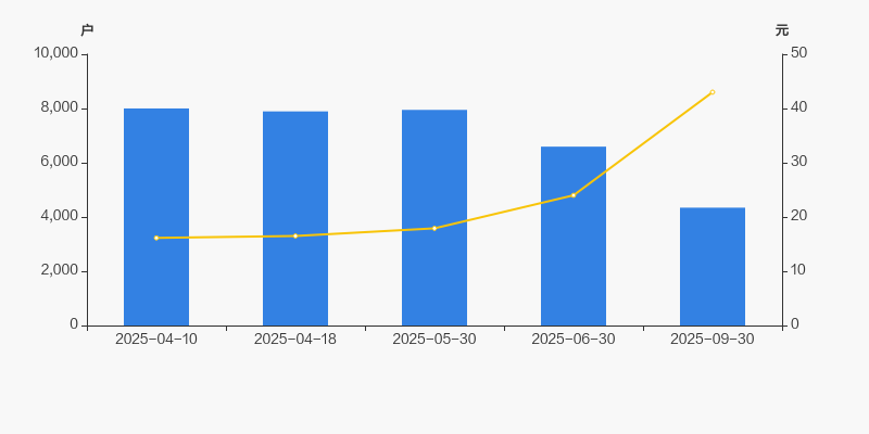 2025年4月10日至今,公司股东户数显著下降,区间跌幅为45.71%。2025年4月10日至2025年9月30日区间股价上涨166.32%。