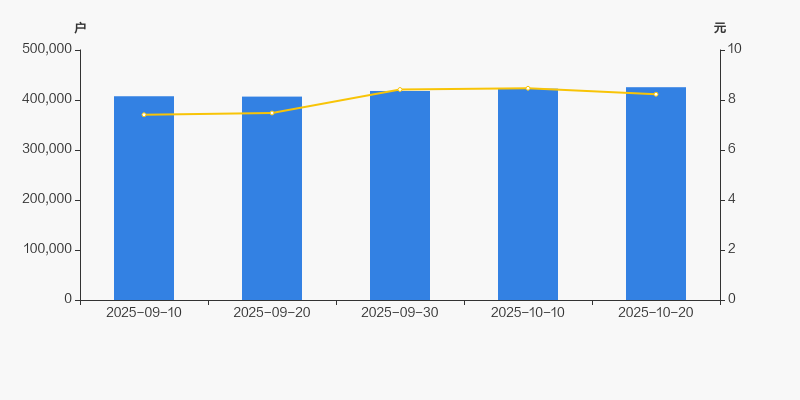 自2025年9月20日以来,公司股东户数连续3期上涨,截至目前增幅为4.61%。2025年9月20日至2025年10月20日区间股价上涨10.03%。