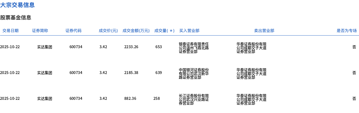 实达集团今日大宗交易平价成交1550万股,成交额5301万元