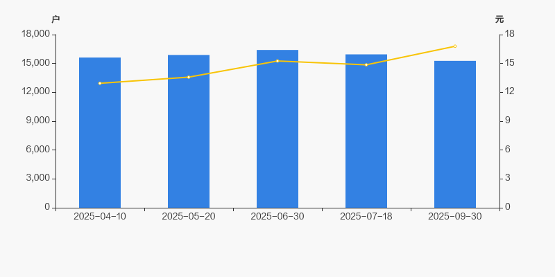 截至2025年9月30日,公司最新总股本为4.04亿股,其中流通股本为2.38亿股。户均持有流通股数量由上期的1.47万股上升至1.55万股,户均流通市值26.11万元。