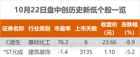 东方财富Choice数据显示,今日有2只个股盘中股价创历史新低。