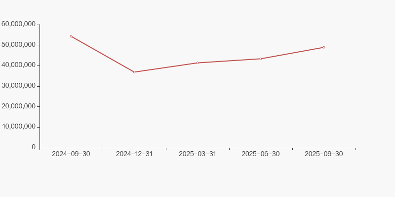 截至2025年9月30日,公司最新流通股本为21.55亿股。户均持有流通股数量由上期的1.79万股下降至1.76万股,户均流通市值88.25万元。