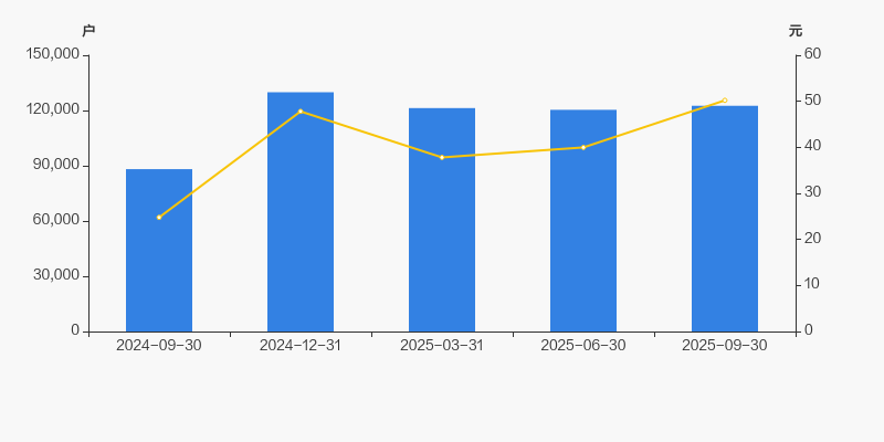 2024年9月30日至今,公司股东户数显著增长,区间涨幅为39.04%。2024年9月30日至2025年9月30日区间股价上涨102.59%。