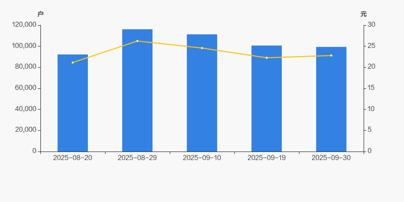 截至2025年9月30日,公司最新总股本为6.63亿股,其中流通股本为5.16亿股。户均持有流通股数量由上期的5127股上升至5193股,户均流通市值11.84万元。