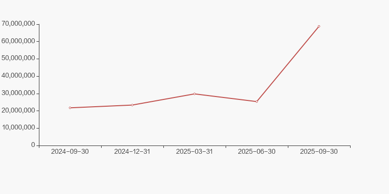 截至2025年9月30日,公司最新总股本为10.3亿股,其中流通股本为9.57亿股。户均持有流通股数量由上期的5925股上升至7776股,户均流通市值31.66万元。