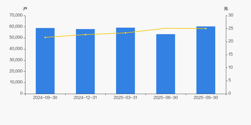 2024年9月30日至今,公司股东户数有所增长,区间涨幅为2.44%。2024年9月30日至2025年9月30日区间股价上涨15.66%。
