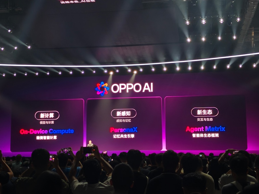 OPPO发布的AI战略涵盖On-Device Compute端侧智能计算、PersonaX记忆共生引擎、Agent Matrix智能体生态框架三大技术底座,也即覆盖计算、感知、生态三个维度。