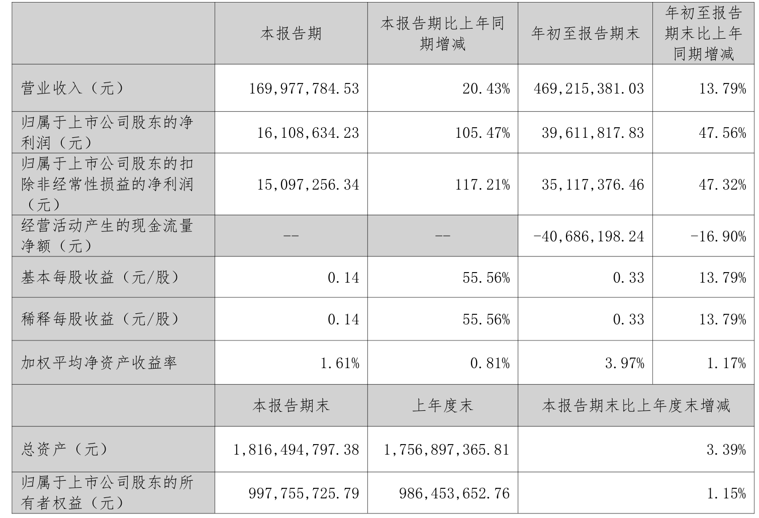 中证智能财讯理工光科(300557)10月23日披露2025年第三季度报告。前三季度公司实现营业总收入4.69亿元,同比增长13.79%;归母净利润3961.18万元,同比增长47.56%;扣非净利润3511.74万元,同比增长47.32%;经营活动产生的现金流量净额为-4068.62万元,上年同期为-3480.29万元;报告期内,理工光科基本每股收益为0.33元,加权平均净资产收益率为3.97%。
