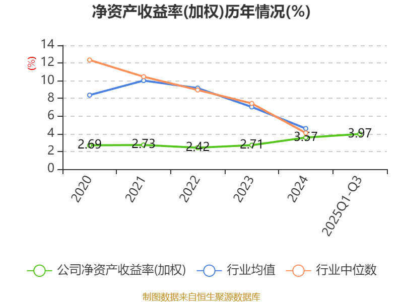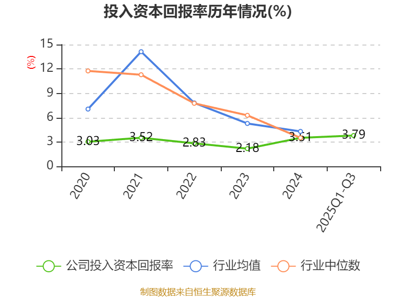 盈利能力方面, 2025年前三季度公司加权平均净资产收益率为3.97%,同比上升1.17个百分点。公司2025年前三季度投入资本回报率为3.79%,较上年同期上升1.26个百分点。