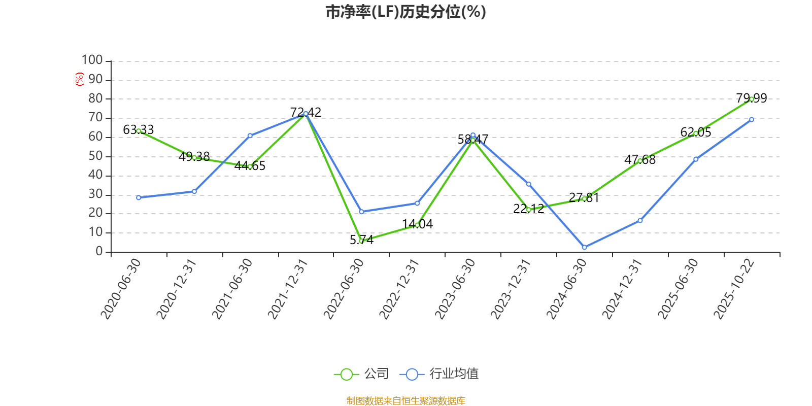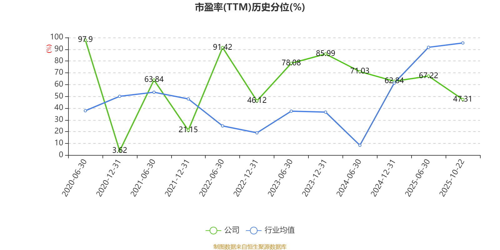 市盈率、市净率为负时,不显示当期分位数,会导致折线图中断。