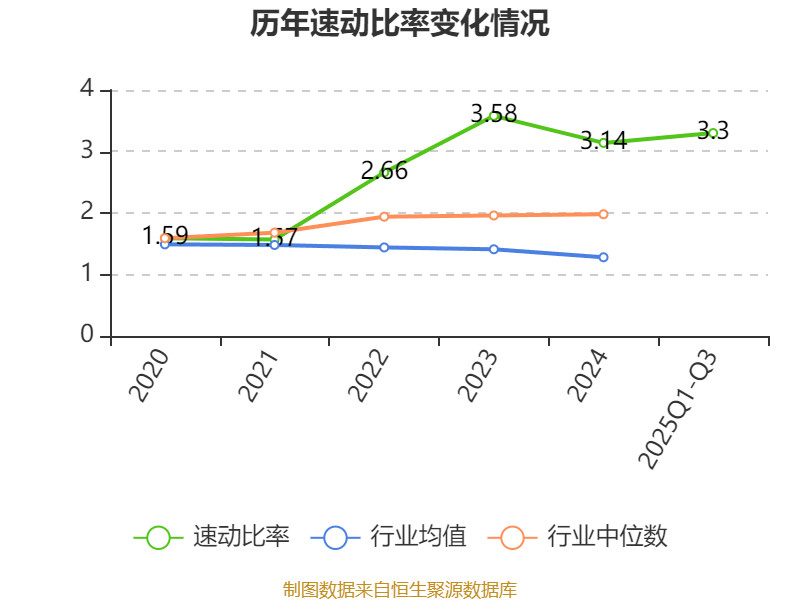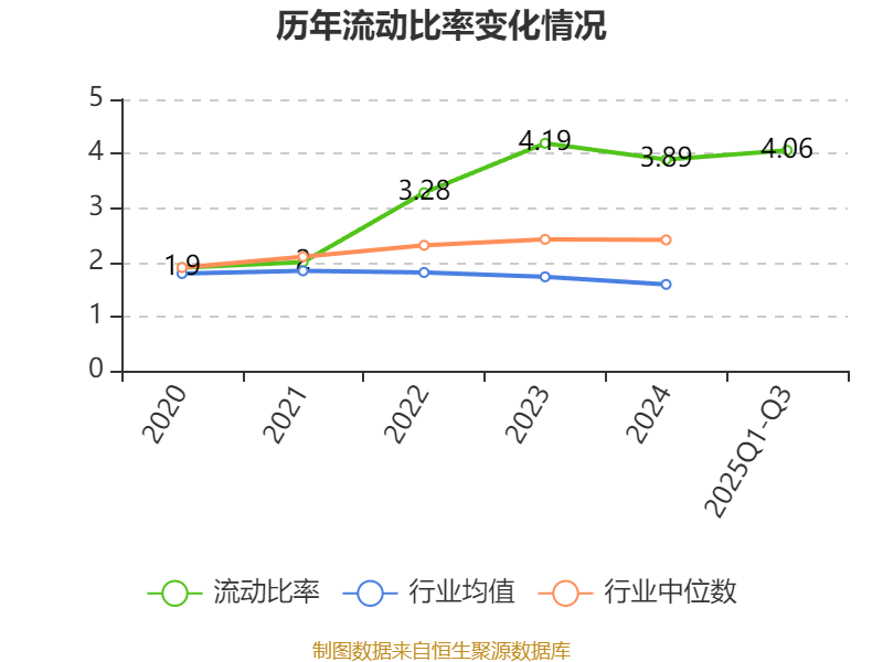 2025年前三季度,公司流动比率为4.06,速动比率为3.3。