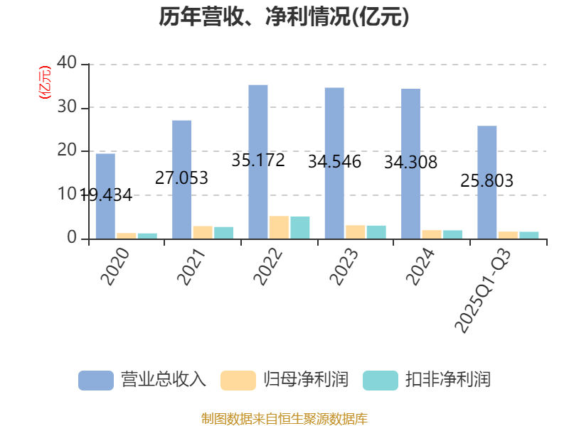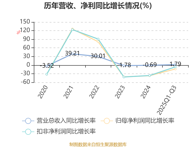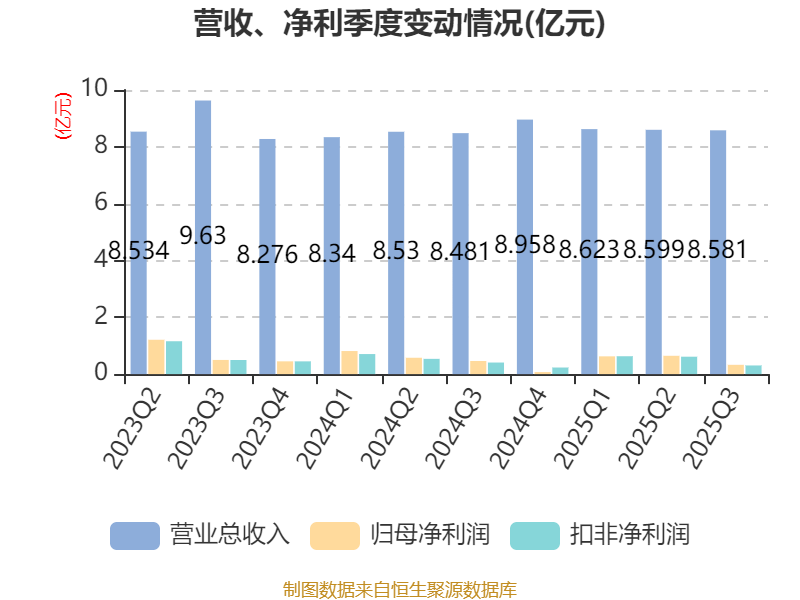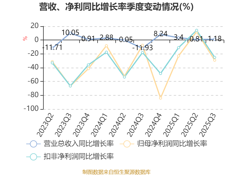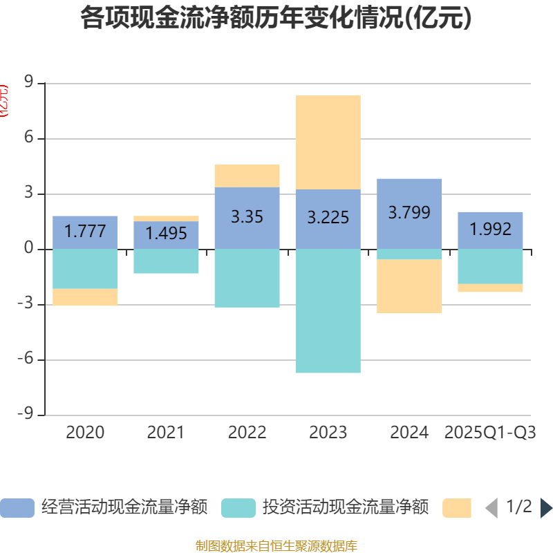 2025年前三季度,公司经营活动现金流净额为1.99亿元,同比下降5.07%;筹资活动现金流净额-4295.94万元,同比增加1.9亿元;投资活动现金流净额-1.91亿元,上年同期为8118.9万元。