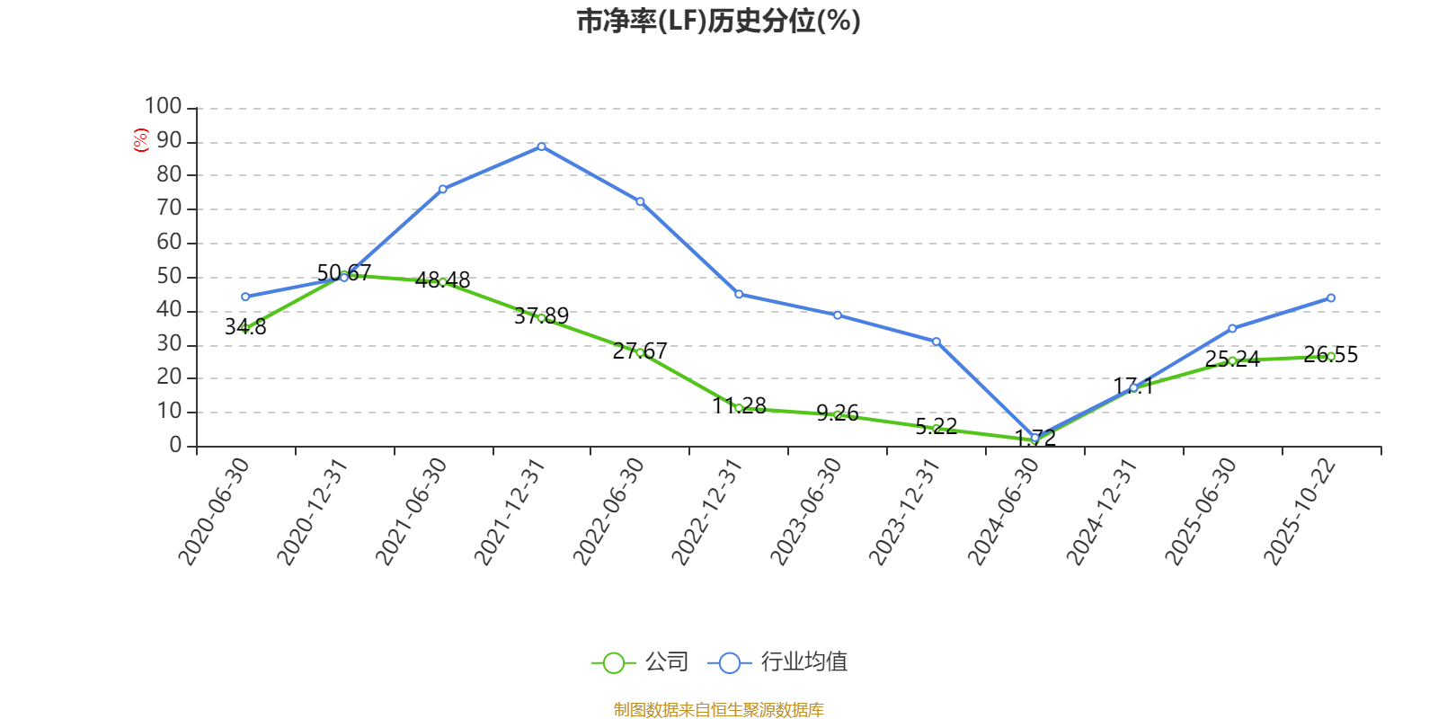 市盈率、市净率为负时,不显示当期分位数,会导致折线图中断。