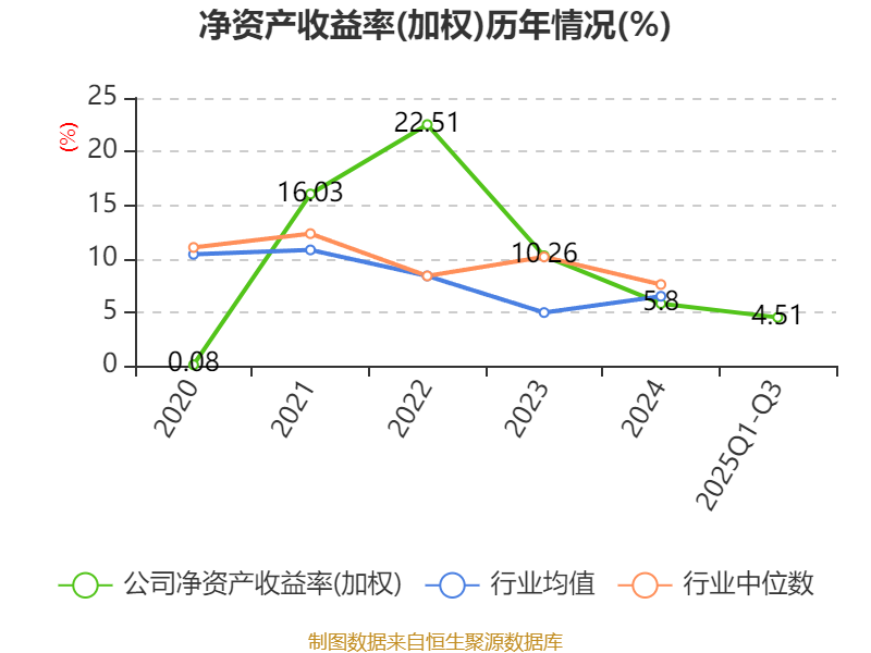 盈利能力方面, 2025年前三季度公司加权平均净资产收益率为4.51%,同比下降1.22个百分点。公司2025年前三季度投入资本回报率为4.16%,较上年同期下降0.47个百分点。
