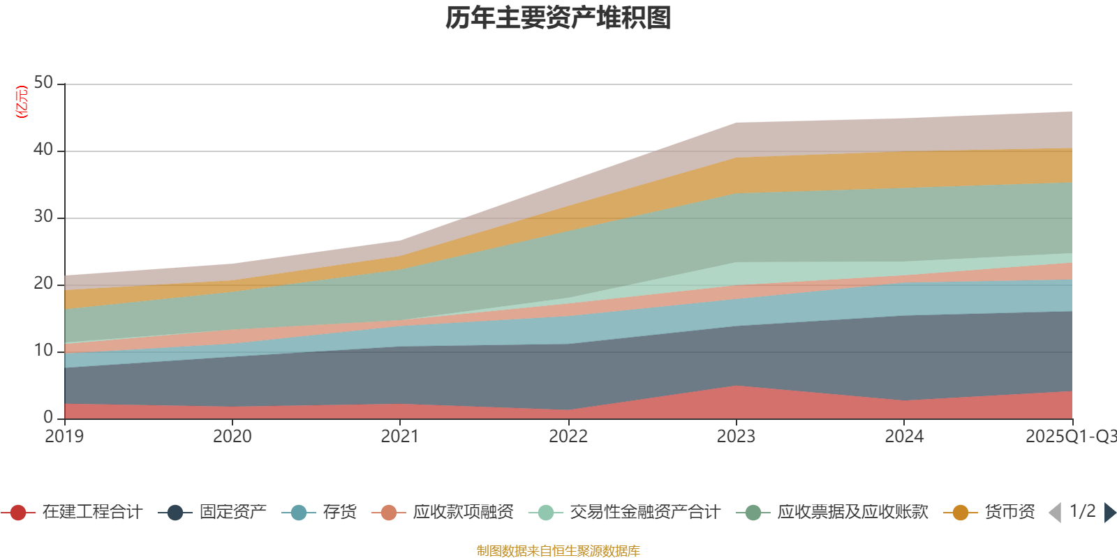 资产重大变化方面,截至2025年三季度末,公司应收款项融资较上年末增加135.5%,占公司总资产比重上升3.12个百分点;在建工程合计较上年末增加53.23%,占公司总资产比重上升2.98个百分点;固定资产较上年末减少6.07%,占公司总资产比重下降2.3个百分点;交易性金融资产合计较上年末减少32.73%,占公司总资产比重下降1.59个百分点。
