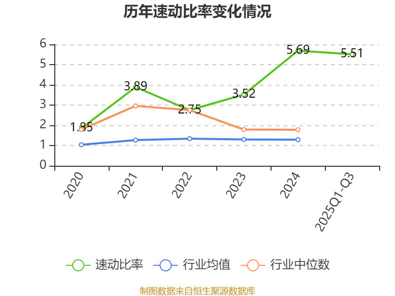 2025年前三季度,公司流动比率为5.95,速动比率为5.51。