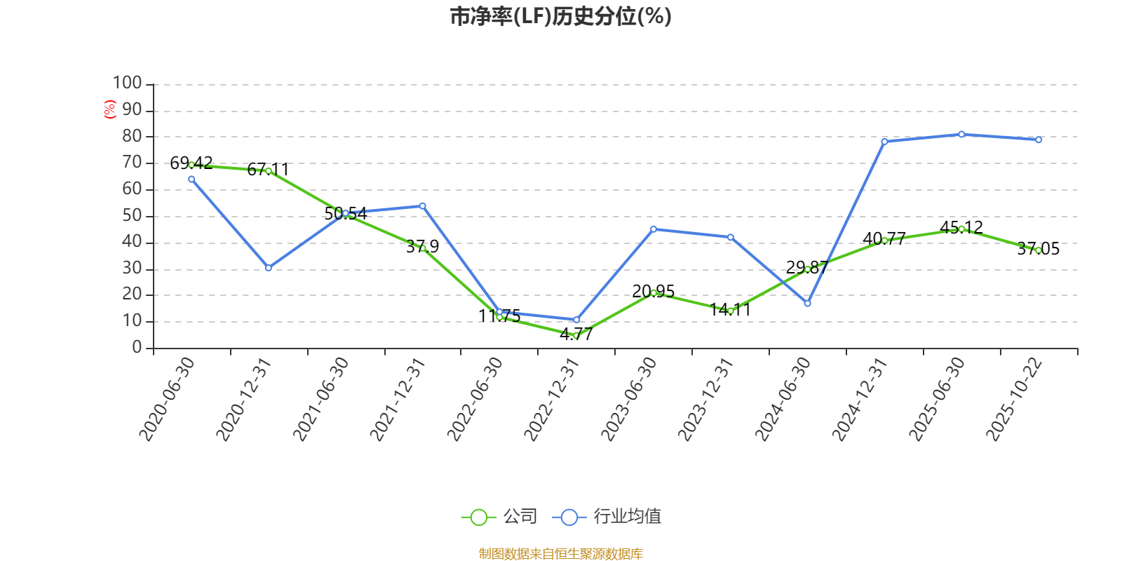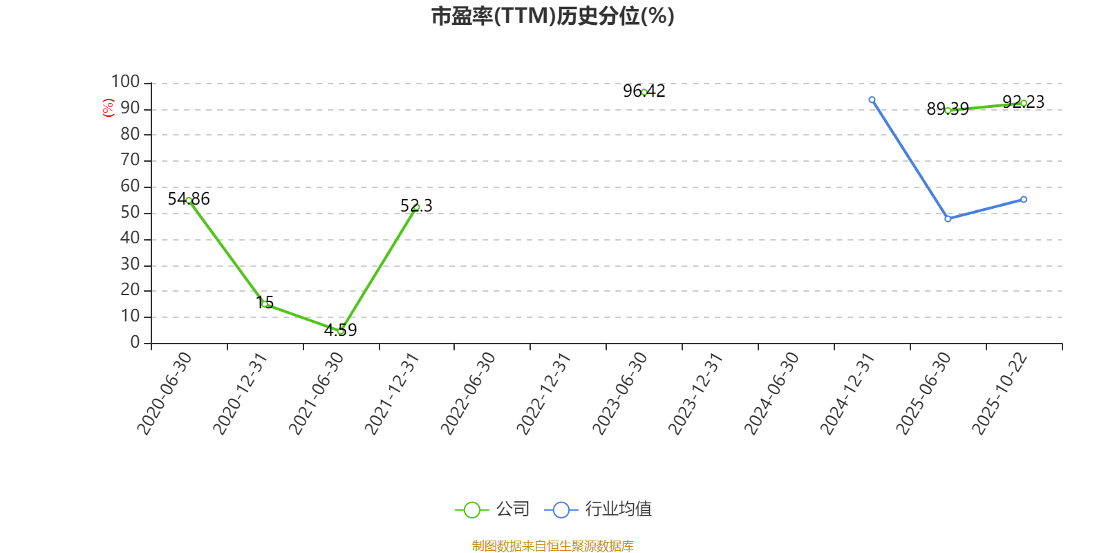 市盈率、市净率为负时,不显示当期分位数,会导致折线图中断。