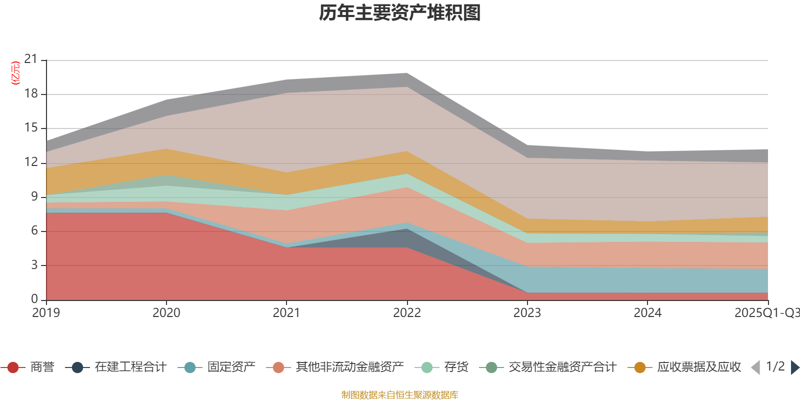 资产重大变化方面,截至2025年三季度末,公司货币资金较上年末减少10.78%,占公司总资产比重下降4.92个百分点;其他应收款(含利息和股利)较上年末增加464.79%,占公司总资产比重上升2.23个百分点;交易性金融资产合计较上年末增加968%,占公司总资产比重上升2.2个百分点;应收票据及应收账款较上年末增加28.13%,占公司总资产比重上升2.18个百分点。
