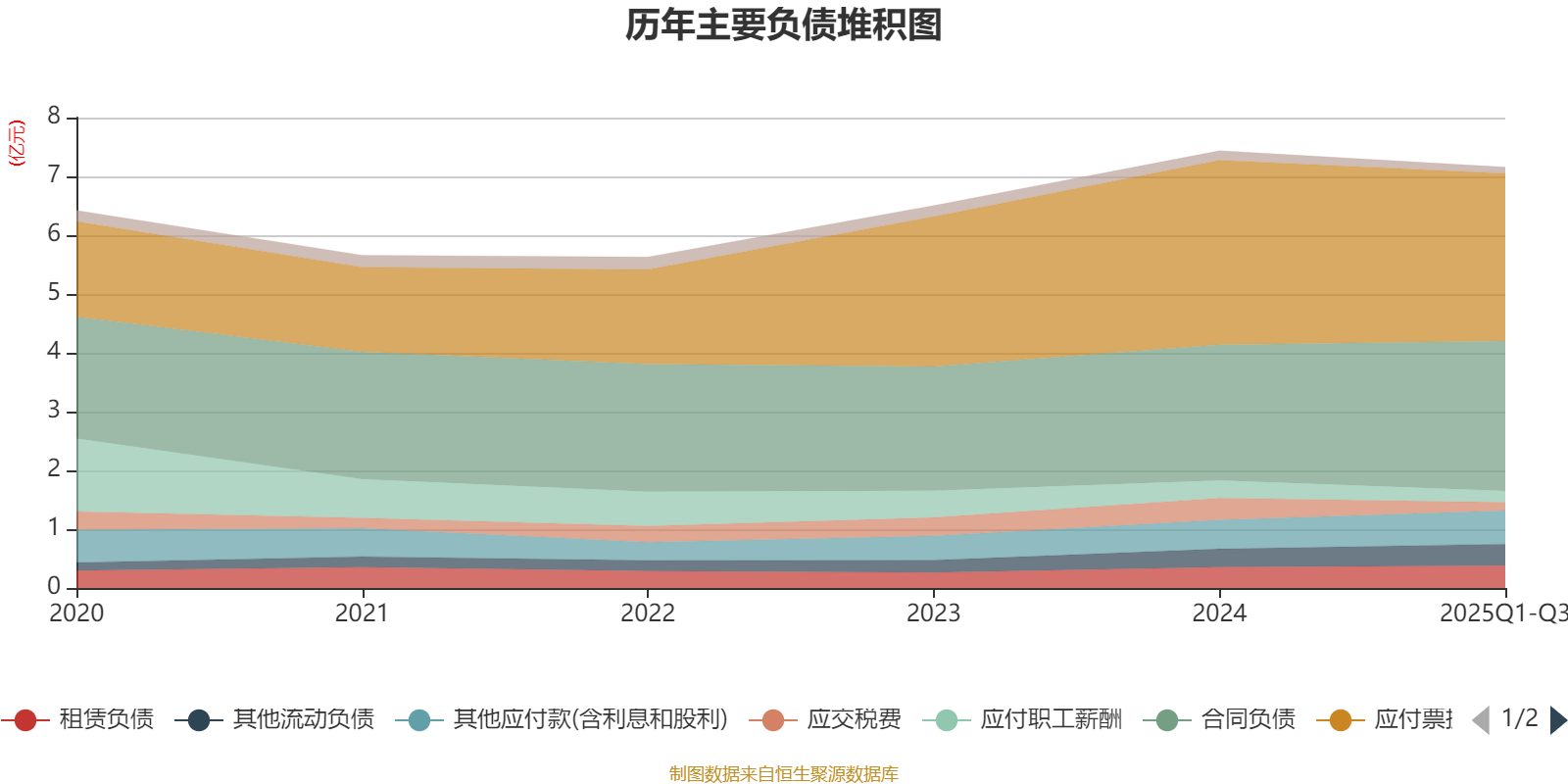 负债重大变化方面,截至2025年三季度末,公司应付票据及应付账款较上年末减少9.04%,占公司总资产比重下降2.87个百分点;应交税费较上年末减少62.74%,占公司总资产比重下降0.93个百分点;合同负债较上年末增加10.51%,占公司总资产比重下降0.79个百分点;应付职工薪酬较上年末减少35.71%,占公司总资产比重下降0.51个百分点。