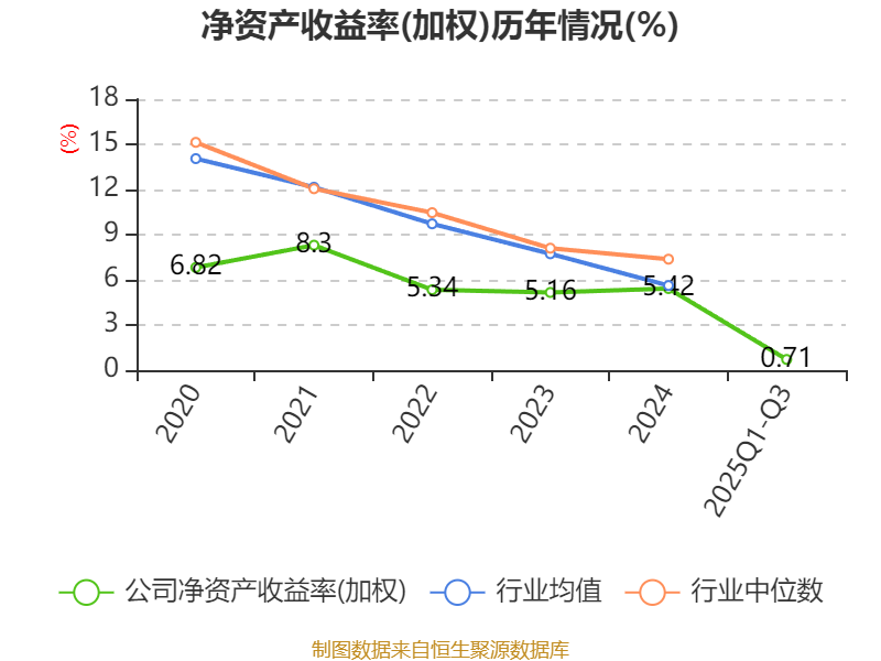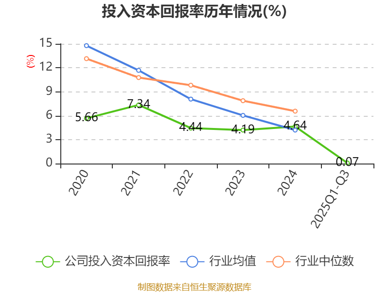 盈利能力方面, 2025年前三季度公司加权平均净资产收益率为0.71%。公司2025年前三季度投入资本回报率为0.07%,较上年同期上升3.27个百分点。
