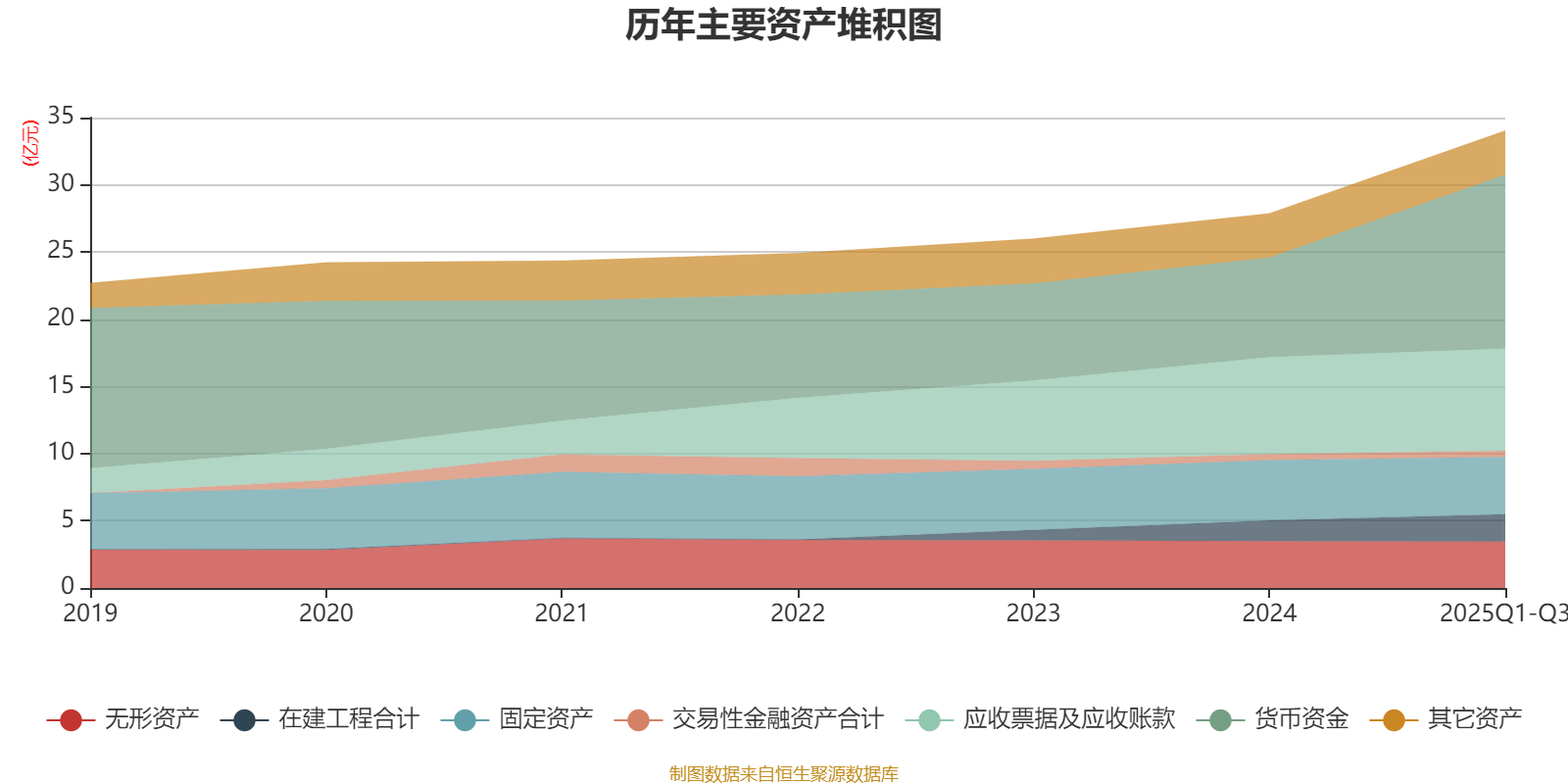 资产重大变化方面,截至2025年三季度末,公司货币资金较上年末增加74.38%,占公司总资产比重上升11.4个百分点;应收票据及应收账款较上年末增加5.41%,占公司总资产比重下降3.54个百分点;固定资产较上年末减少4.52%,占公司总资产比重下降3.51个百分点;无形资产较上年末减少0.85%,占公司总资产比重下降2.35个百分点。