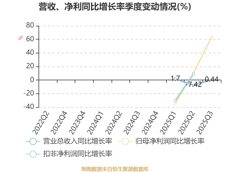 2025年前三季度,公司流动比率为3.34,速动比率为3.27。