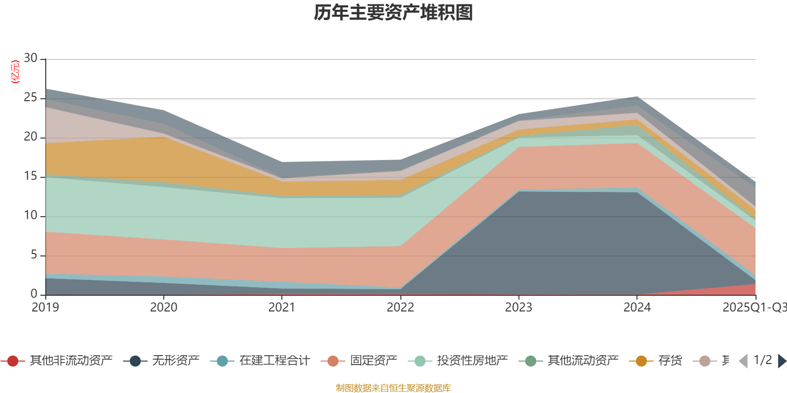 资产重大变化方面,截至2025年三季度末,公司无形资产较上年末减少96.28%,占公司总资产比重下降48.18个百分点;固定资产较上年末增加5.45%,占公司总资产比重上升19.24个百分点;货币资金较上年末增加161.21%,占公司总资产比重上升12.9个百分点;其他非流动资产较上年末增加4685.7%,占公司总资产比重上升9.32个百分点。