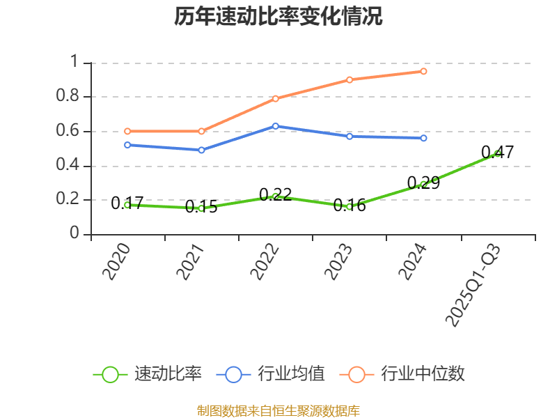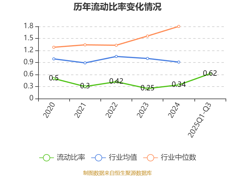 2025年前三季度,公司流动比率为0.62,速动比率为0.47。