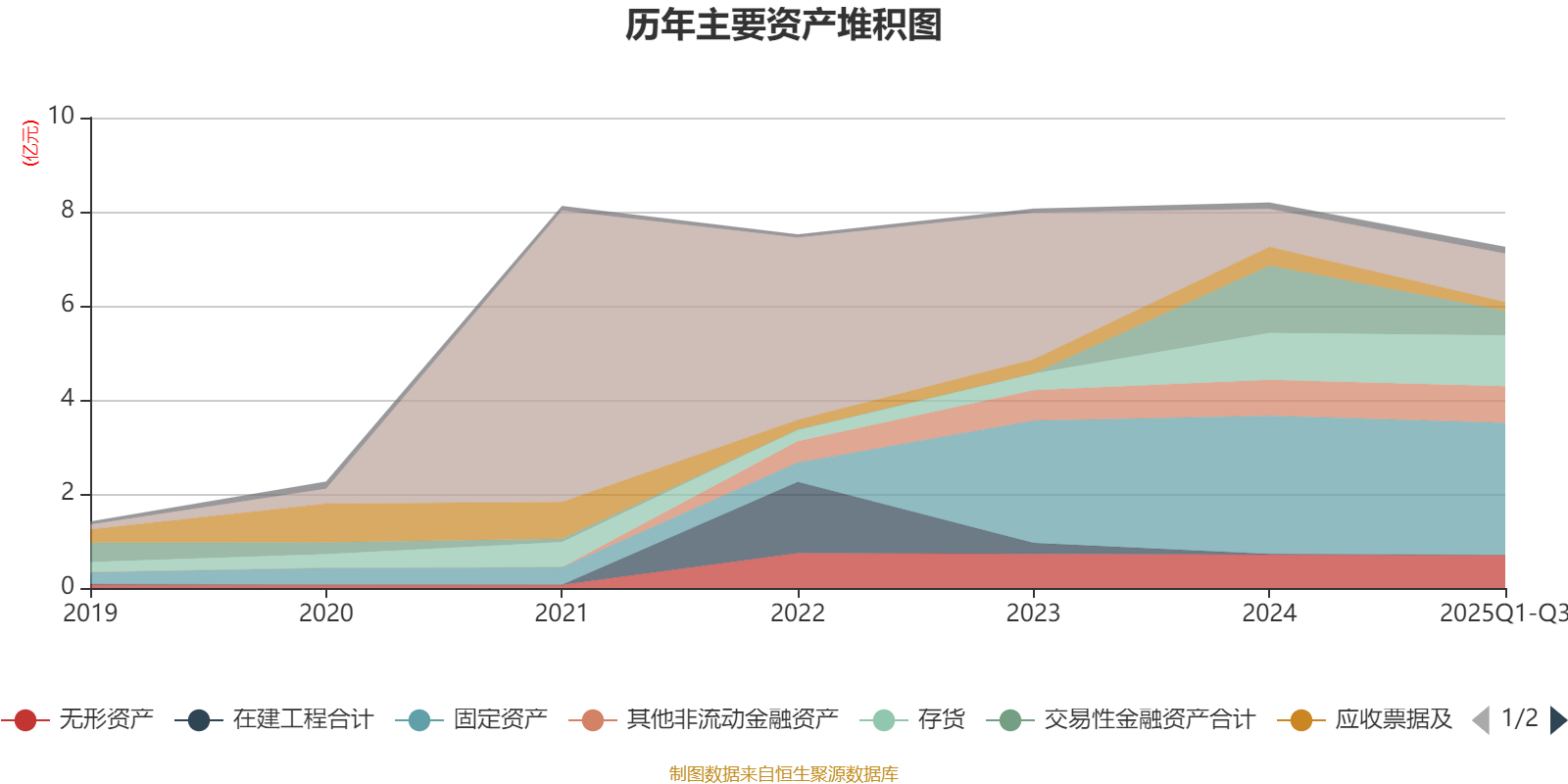 资产重大变化方面,截至2025年三季度末,公司交易性金融资产合计较上年末减少63.63%,占公司总资产比重下降10.28个百分点;货币资金较上年末增加27.61%,占公司总资产比重上升4.35个百分点;固定资产较上年末减少4.22%,占公司总资产比重上升2.95个百分点;存货较上年末增加8.3%,占公司总资产比重上升2.73个百分点。