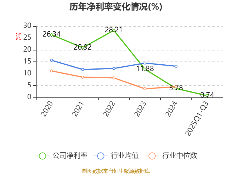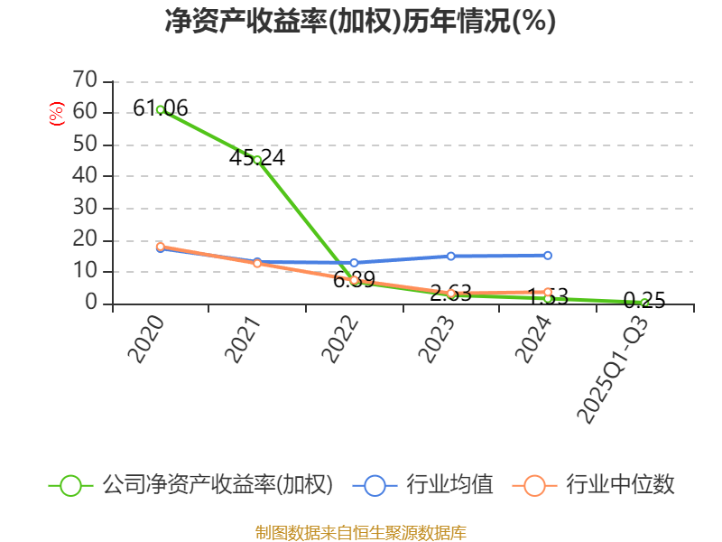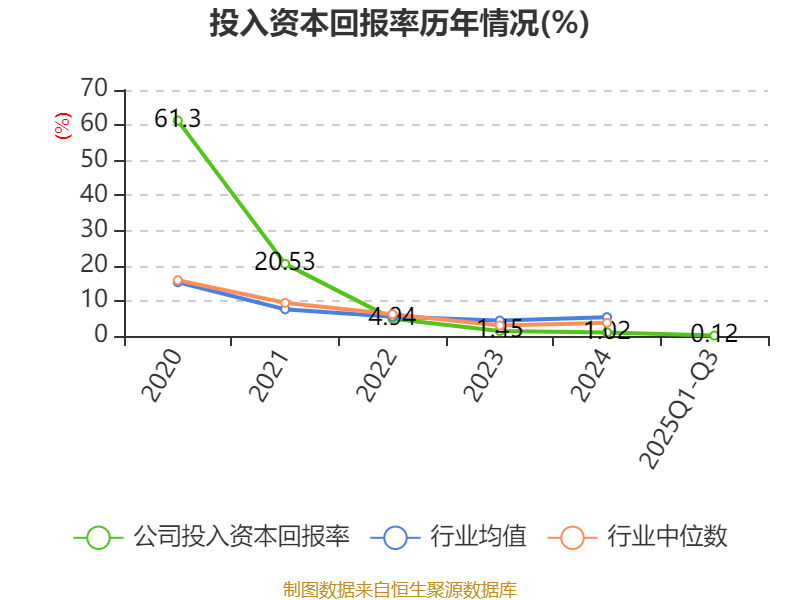 盈利能力方面, 2025年前三季度公司加权平均净资产收益率为0.25%,同比下降0.52个百分点。公司2025年前三季度投入资本回报率为0.12%,较上年同期下降0.31个百分点。