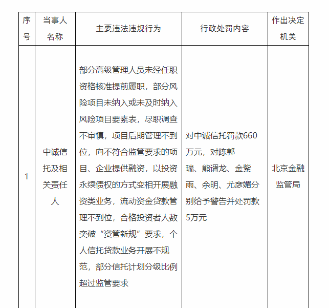 信托行业年内最大额罚单落地,让头部机构中诚信托站在了舆论聚光灯下。