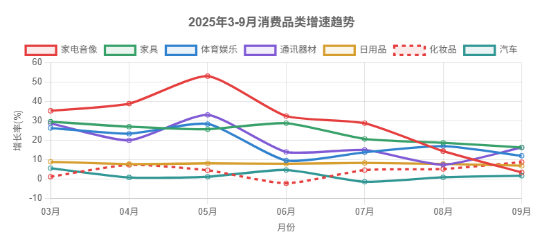 同时,国补也可能让消费者形成 “补贴依赖”,在非补贴时段的购买意愿显著下降。如家电音像类在9月增速骤降至3.3%,许多消费者会为了等待“双十一”的国补而推迟购买时间。