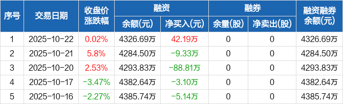 云涌科技:融资净买入42.19万元,融资余额4326.69万元(10-22)